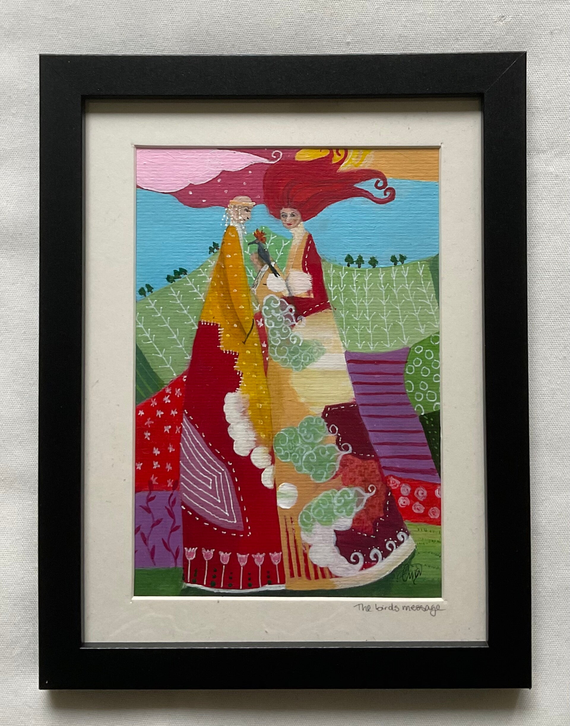 It’s painted with acrylics on acrylic paper. As part of this special offer, the painting comes with a passepartout and is framed. The frame is made of black wood and plexiglass.
